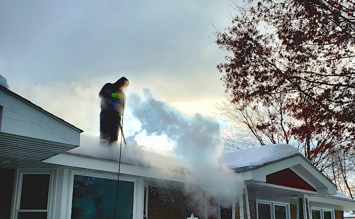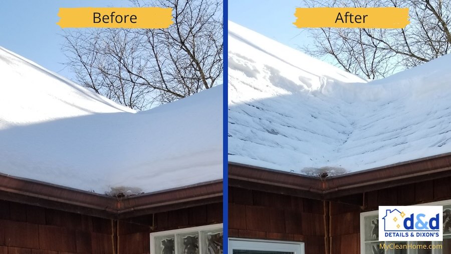 - From the ground level, roof rakes are used to remove snow from the affected areas.